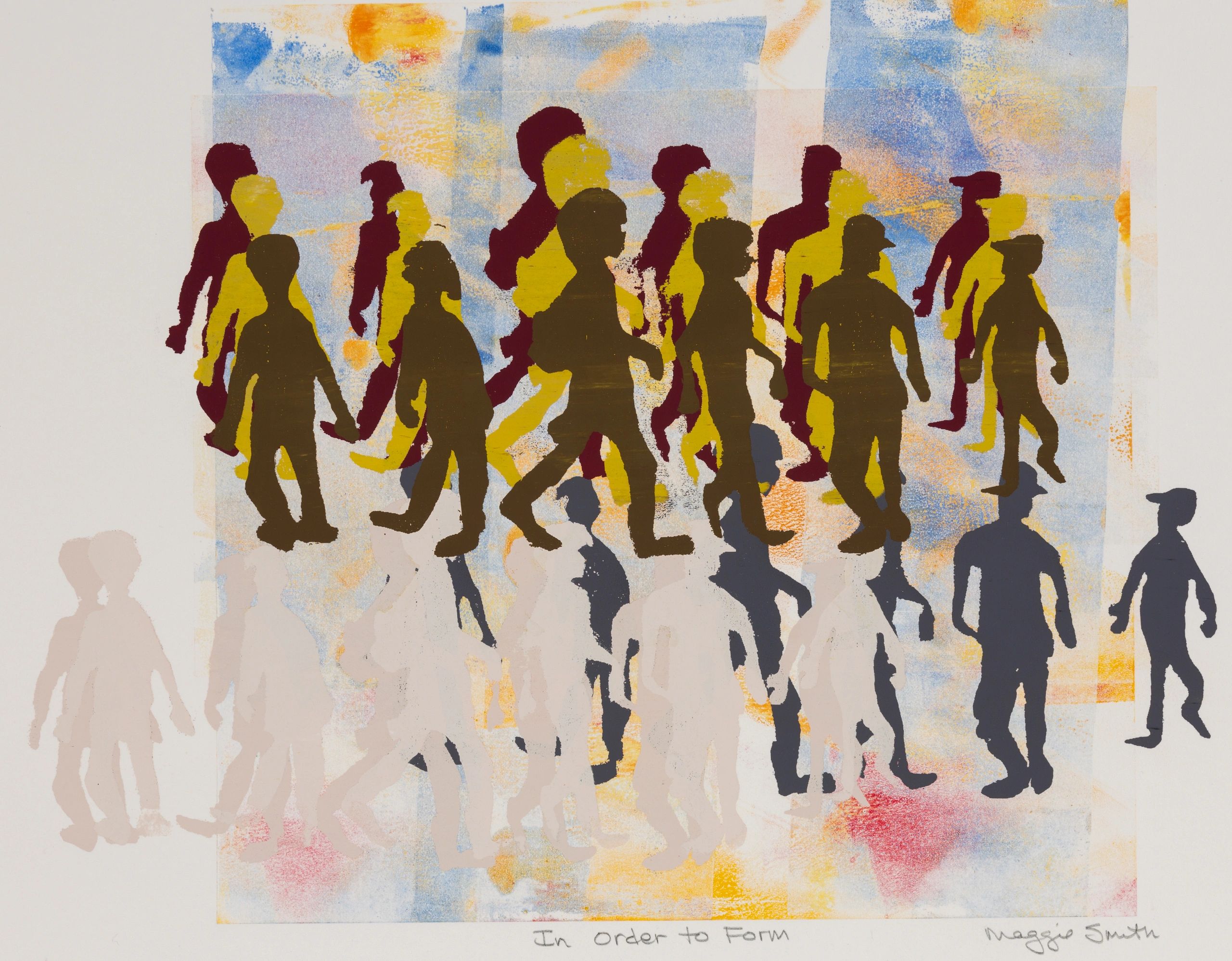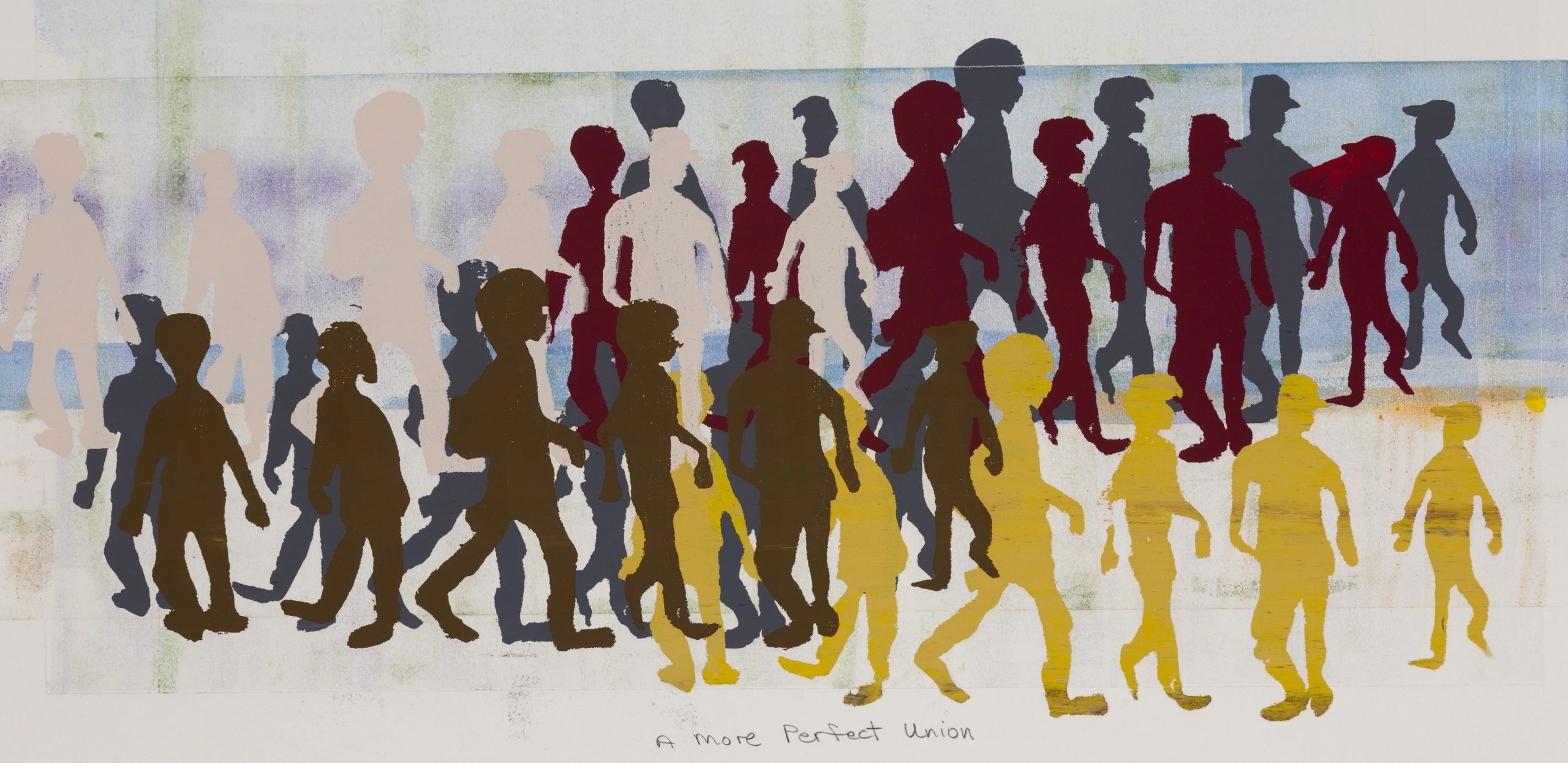 These images are created using silkscreen over monotype background to demonstrate that we are a country made up of diverse individuals.